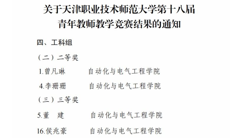 自动化与电气工程学院在天津职业技术师范大学第十八届青年教师教学竞赛中斩获佳绩