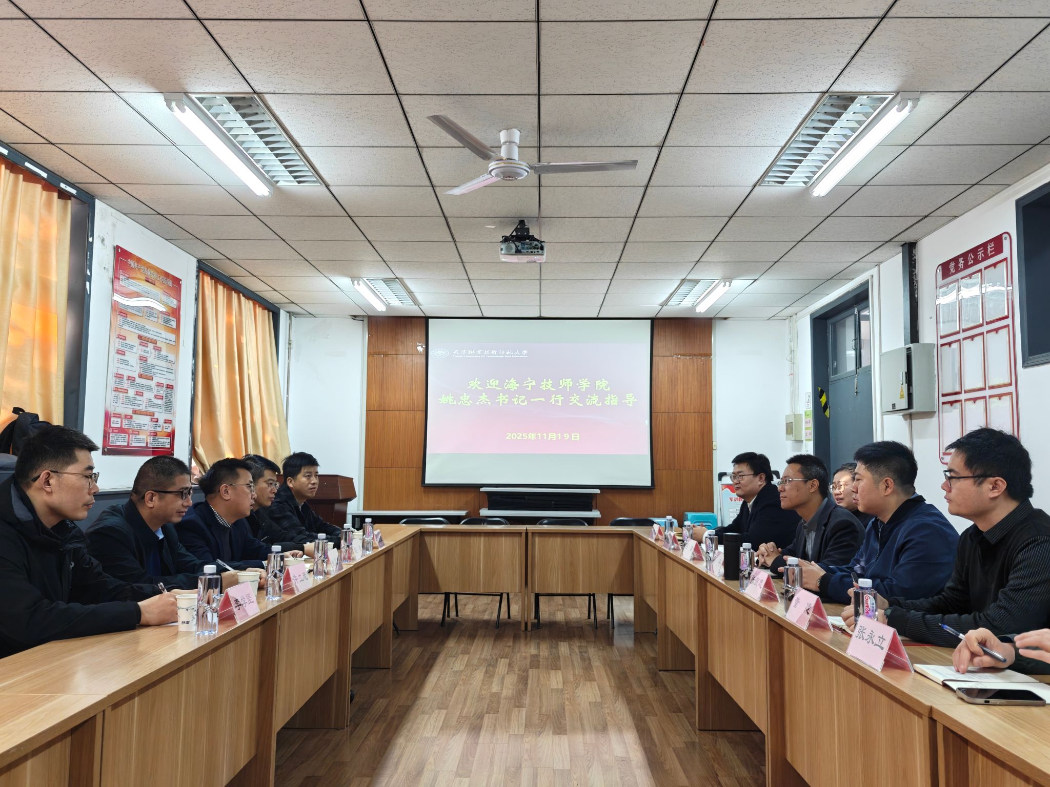 为深化校际合作、拓宽人才培养与就业渠道,11月19日,浙江海宁技师学院党委书记姚忠杰、副校长程锋、人事处处长许立忠、智能制造学院副院长崔启威、智能制造学院骨干教师李学坚一行到我校自动化与电气工程学院开展调研交流。党委学生工作部副部长张贺忠,自动化与电气工程学院党委书记吴平,党委副书记、纪委书记程君,副院长董建及相关负责人参加座谈。
