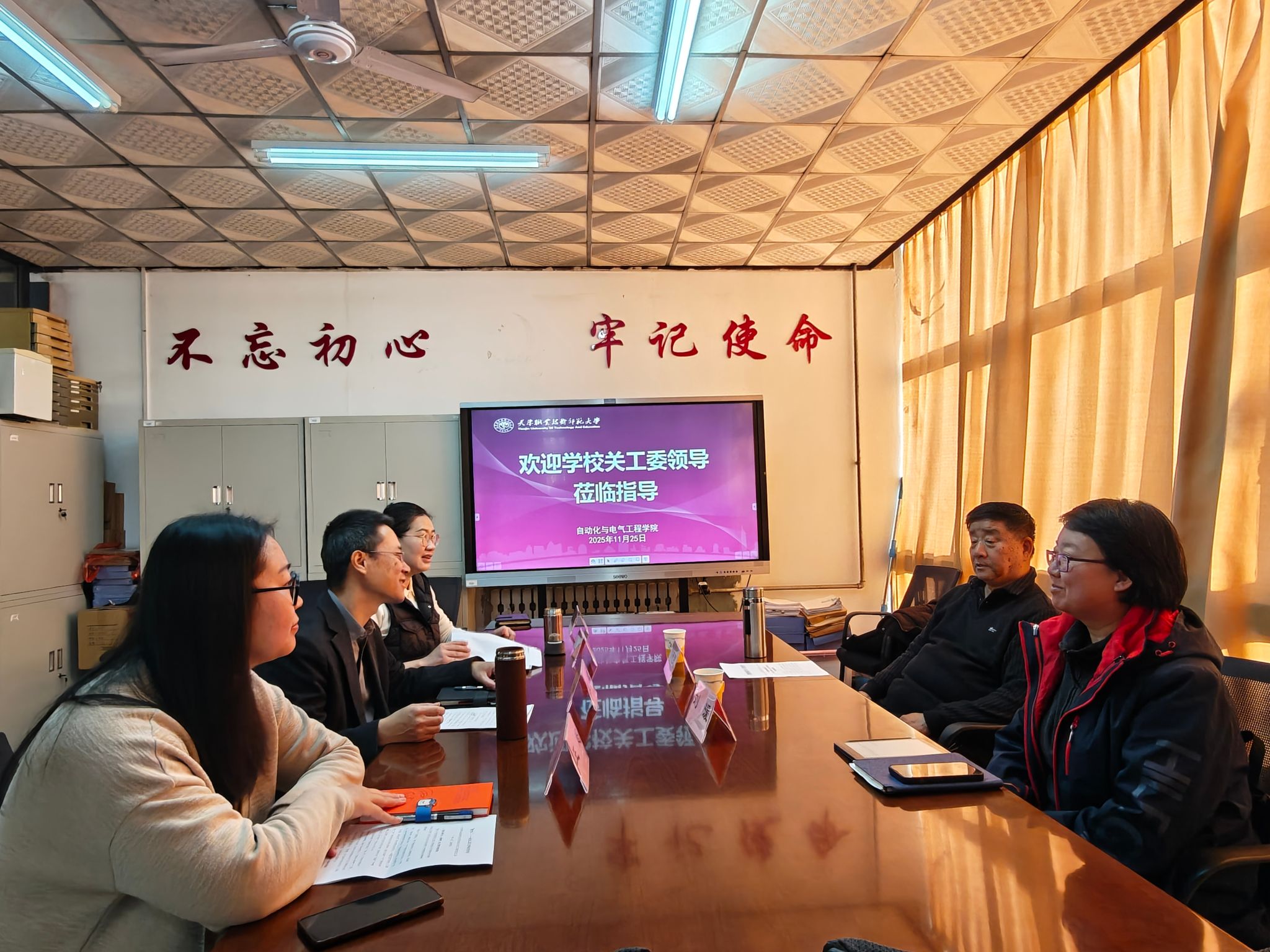 为深入推动二级关工委工作,扎实推进“五好”关工委建设,加强校院两级关工委工作协同联动,11月25日,我校关工委常务副主任、原校党委副书记贾德民、校离退休工作处副处长刘湲前往自动化与电气工程学院调研指导关工委工作。自动化与电气工程学院党委书记、关工委主任吴平,学院党委副书记、关工委副主任程君,学工办主任王超及辅导员丁俊伍参加座谈。