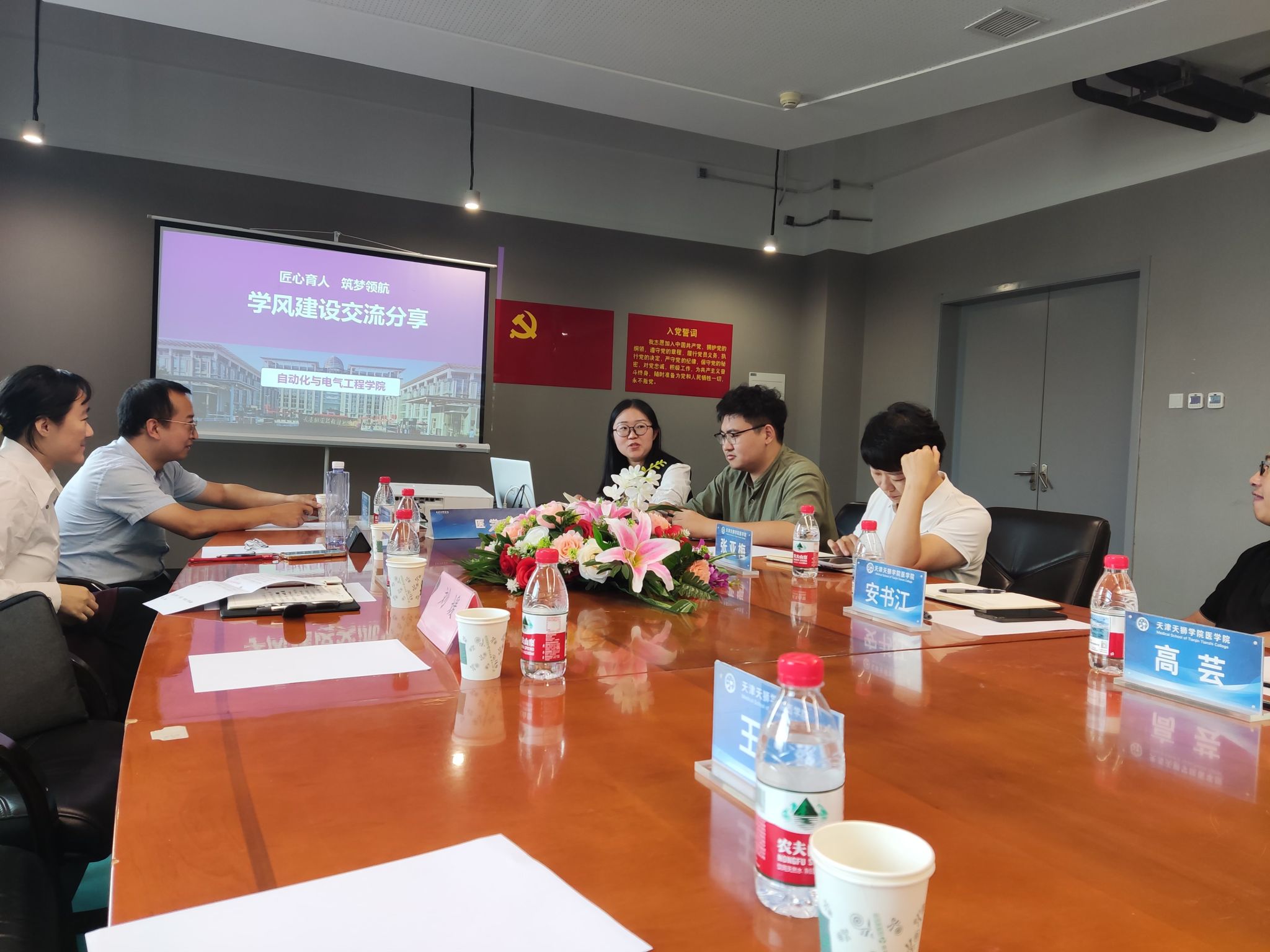 互动环节中,双方围绕交流内容及共同关心的问题展开热烈讨论。天津天狮学院医学院方面表示,自动化与电气工程学院在党建、教学、科研、育人等方面的经验具有重要借鉴意义,为该院的相关工作提供了新思路新启发。