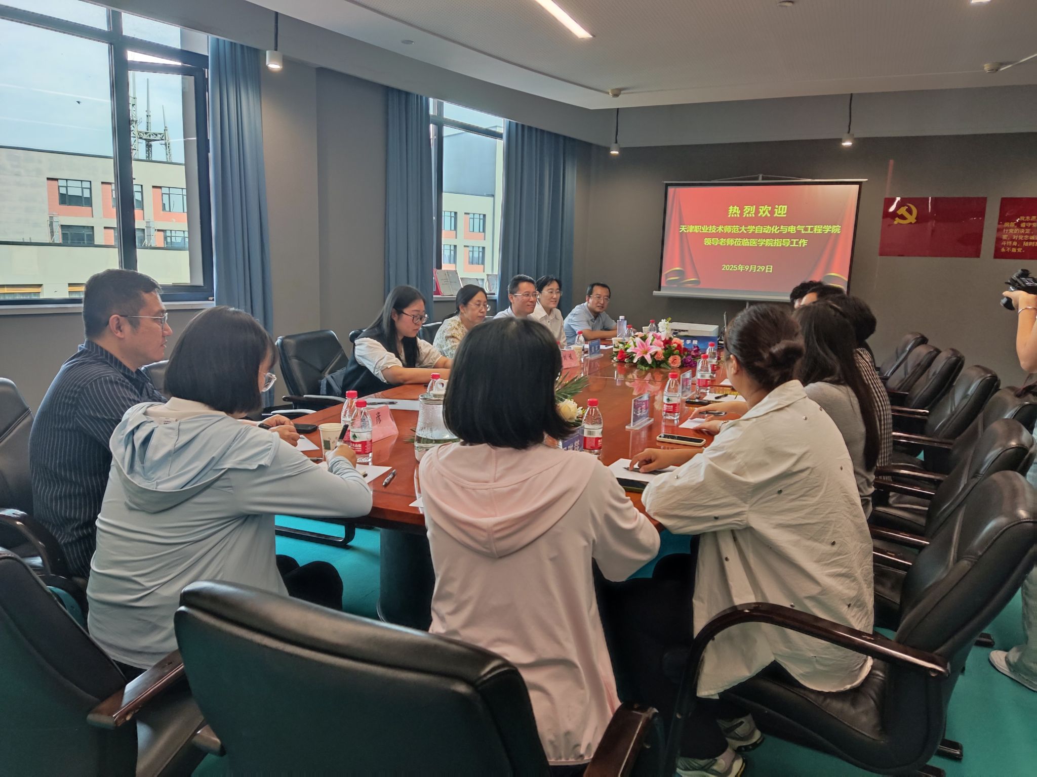 为深入落实我校与天津天狮学院党建结对共建工作部署要求,进一步提升共建实效,9月29日下午,自动化与电气工程学院党委书记吴平带领自动化系教工党支部书记、系主任曾凡琳、本科生第五党支部书记、学工办主任王超等一行5人赴天津天狮学院医学院开展结对共建交流活动。天津天狮学院医学院院长高芸、党总支副书记安书江、骨干教师及师生党员代表热情接待,双方举行座谈交流。我校派驻天狮学院党建共建包联工作组组长、天津天狮学院党委委员、副书记刘媛、我校派驻天狮学院党建共建包联工作组干部、天津天狮学院党委工作处处长张彦出席活动。
